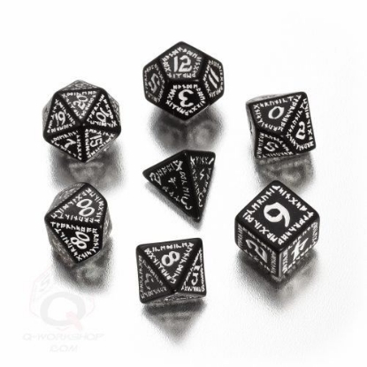 Q-WorkShop's Runic Black-white Dice set, Set of 7