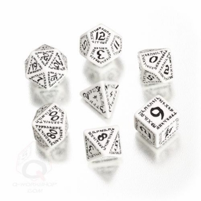 Q-WorkShop's Runic White-black dice set, Set of 7